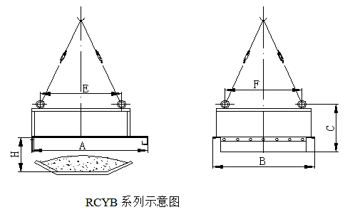 四、RCYB系列懸掛式手動永磁除鐵器主要技術(shù)參數(shù)、外形尺寸 執(zhí)行標準:JB/T8711
