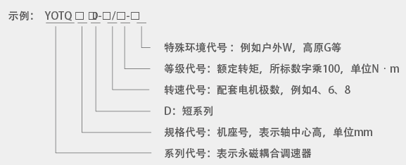 調(diào)速器產(chǎn)品型號由系列代號、規(guī)格代號、等級代號、特殊環(huán)境代號組成