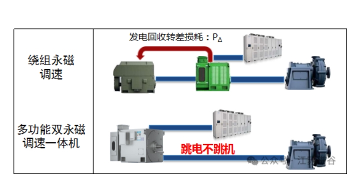 【解決轉(zhuǎn)差調(diào)速損耗策略】 將發(fā)熱轉(zhuǎn)差功率用永磁轉(zhuǎn)差發(fā)電技術(shù)來回收轉(zhuǎn)差能量。